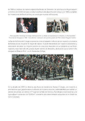 (Foto izquierda: Homenaje al Colegio Internacional en sus Bodas de Diamante por el Alcalde y la Municipalidad