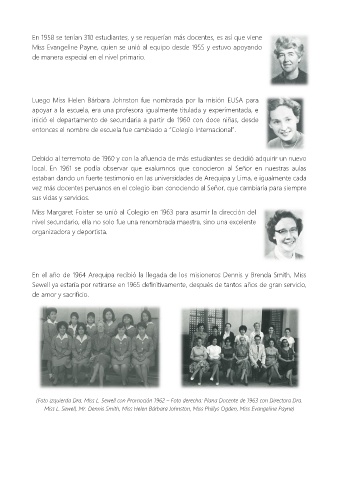 (Foto izquierda Dra. Miss L. Sewell con Promoción 1962 – Foto derecha: Plana Docente de 1963 con Directora Dra.